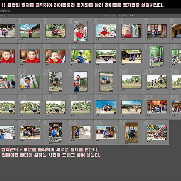 라이트룸으로 사진앨범 만들고 온라인으로 라이트룸 사용하기 라이트룸으로 사진앨범을 만드는 기능은 매우 유용한 기능입니다. 사진을 취미로 하시는 분들 보다는 사진을 업으로 하시는 분들이 많이 사용하시는 기능인것같긴(?) 하지만 매우 유용한 기능이니까 알아 두시면 나쁘지 않겠죠? 우선 이 기능은 기본 조건이 있습니다. 당연한 얘기이겠지만 어도비의 CC프로그램을 구독하고 있어야 합니다. 왜냐하면 어도비 포토그래피 플랜(월 만천원)을 사용하면 크라우드 20G 사용 공간이 생기는데 이 기능은 이것이 없으면 안되기 때문입니다. 딱히 어도비CC 구독광고를 하고 싶지는 않지만 참 좋은 기능이라 소개 드리려고 합니다. 1) 우선 이 기능은 라이트룸의 클라우드 저장 공간을 사용해야 하므로 라이트룸의 식별판을 마우스 좌클릭을 하여 라이트룸 동기화를 눌러 주셔야 합니다. 2) 그리고.. 더보기